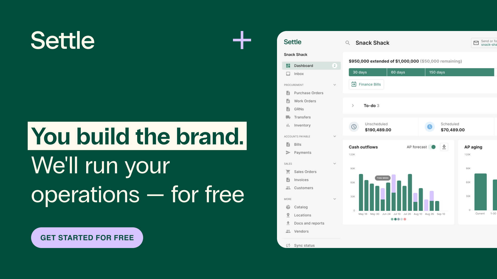 Running a CPG brand should feel empowering, not like you're constantly flying blind. That's why Settle exists: to give growing brands the operational backbone they need to scale with clarity, not chaos. From inventory to payments to forecasting, our tools are built to help founders stay in control of their margins, cash flow, and growth.