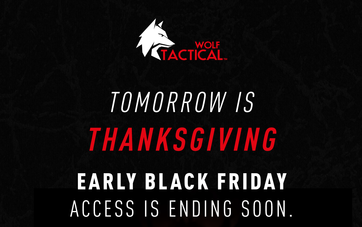 Special Offer Details: Apply code PREBF at checkout for 20% off. Offer valid 11/23/25-11/27/25. Current promotions are not valid on previous purchases or in combination with any other promotional offer. This offer is only valid in the US and for purchases on www.wolftacticalusa.com. All offers may be modified or discontinued at any time without notice. Offers are subject to adjustment due to returns, cancellations, and exchanges. | | © Wolf Tactical 2025 2014 Champions Gateway NW Suite 300 Canton, OH44700 No longer want to receive these emails? Unsubscribe. | | | | |