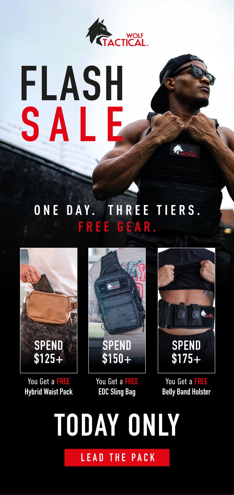 Special Offer Details: Spend $125 or more & Get a FREE Hybrid Waist Pack. Spend $150 or more & Get a FREE EDC Sling Bag. Spend $175 or more & Get a FREE Belly Band Holster. Valid Today Only. Current promotions are not valid on previous purchases or in combination with any other promotional offer. This offer is only valid in the US and for purchases on www.wolftacticalusa.com. All offers may be modified or discontinued at any time without notice. Offers are subject to adjustment due to returns, cancellations, and exchanges.